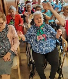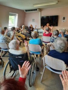 Une rencontre inoubliable pour nos résidents, ce mercredi 16 octobre 2024. Particulièrement pour Mme ENGEL qui a pu rechanter avec ses anciennes camarades de la chorale. Très belles retrouvailles aussi pour 2 autres résidentes qui ont revue d’anciennes connaissances. Merci à M. François ERDRICH et à sa troupe pour nous avoir communiqué leur plaisir de chanter.